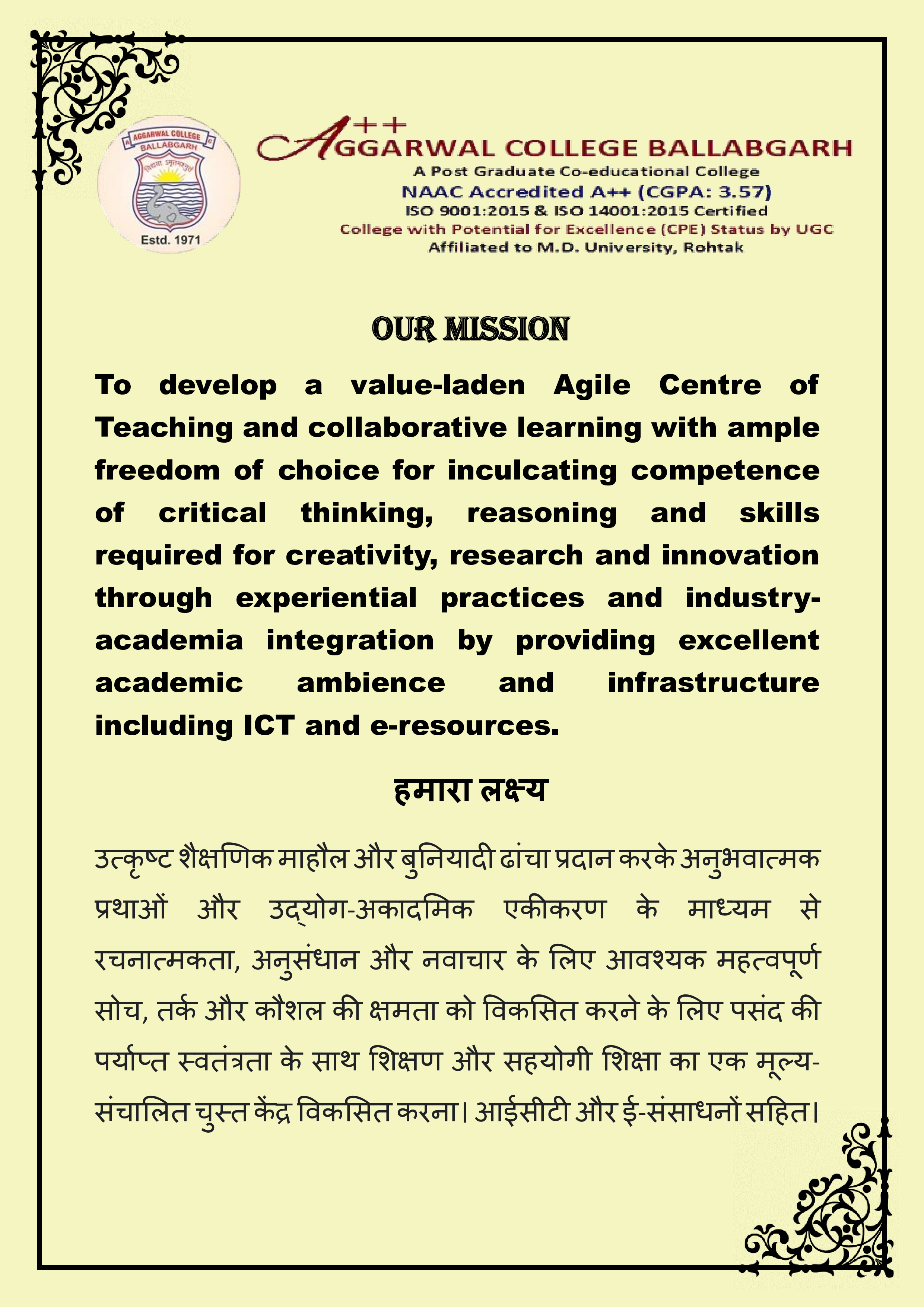 The Principal, Aggarwal College, Ballabgarh - 121004, Distt. Faridabad (Haryana) India